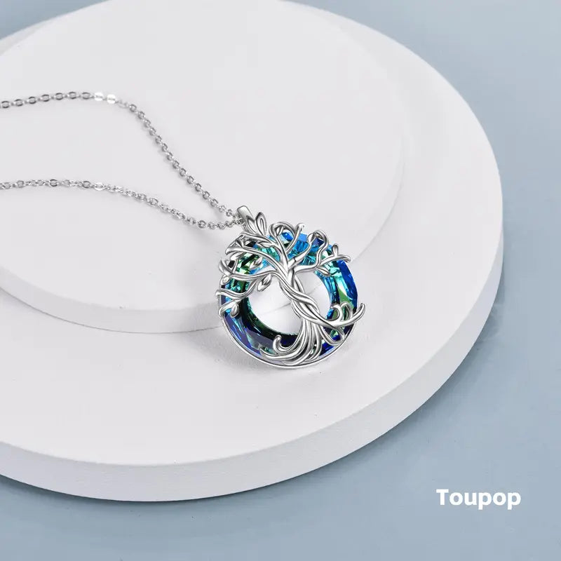 18" 925 Sterling Silver Tree of Life Pendant Necklace | Set with Austrian Quartz Crystal